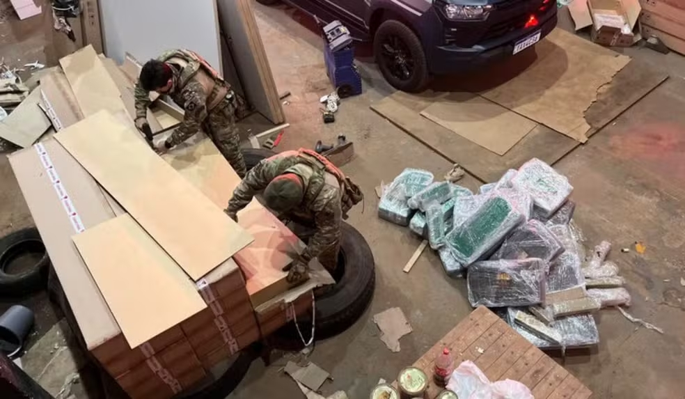 No barracão, os policiais flagraram ele descarregando a maconha. Foi apurado que o espaço escondia caixotes de MDF – usados para transporte de móveis desmontados – com drogas dentro.